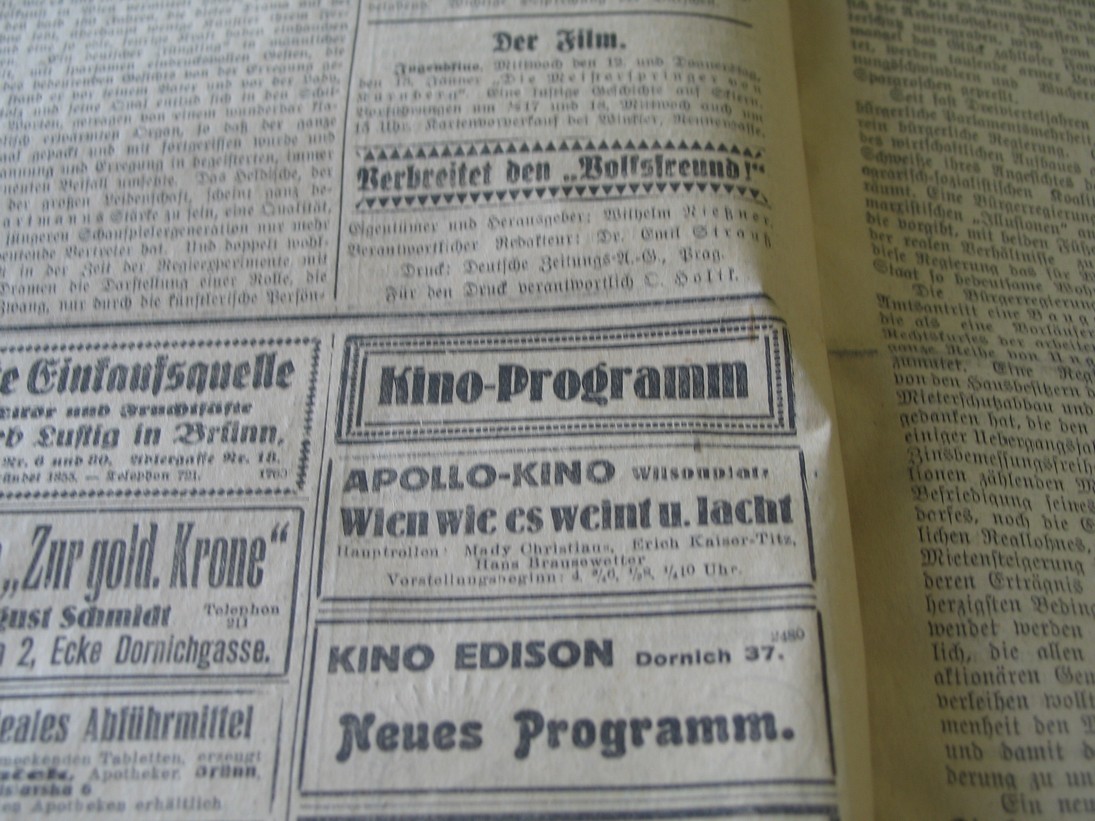 | Number of screenings | Volksfreund | 1927-01-11 | 8 | 100 |