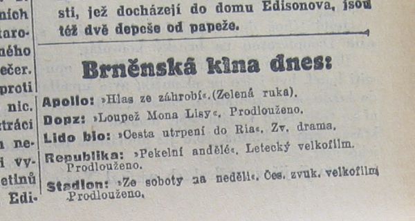| Cinema | Moravské slovo | 1931-10-06 | 232 | 100 |