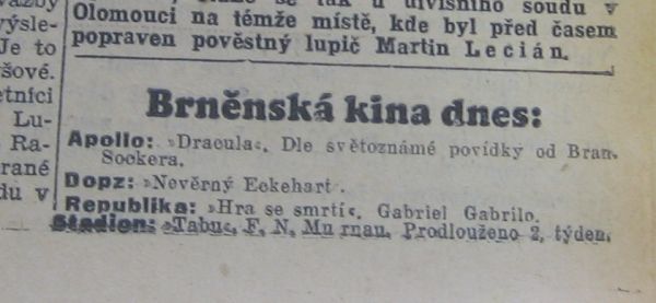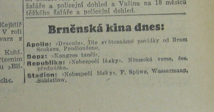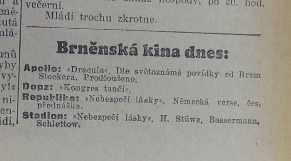 | Cinema | Moravské slovo | 1931-11-06 | 258 | 100 |