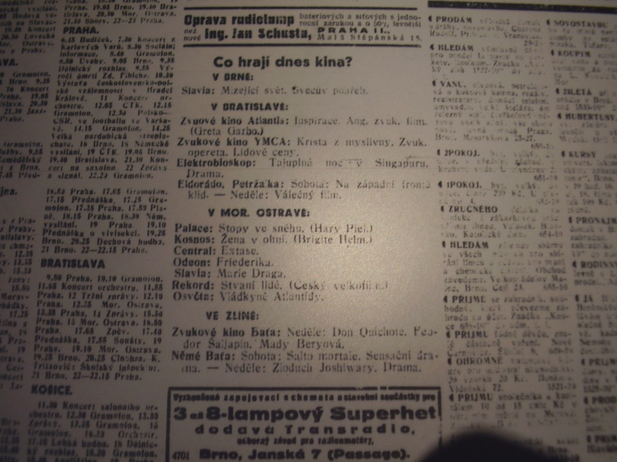 | Programme publishing date | 1933-10-14: Moravské noviny | 1933-10-14 | 237 | 100 |