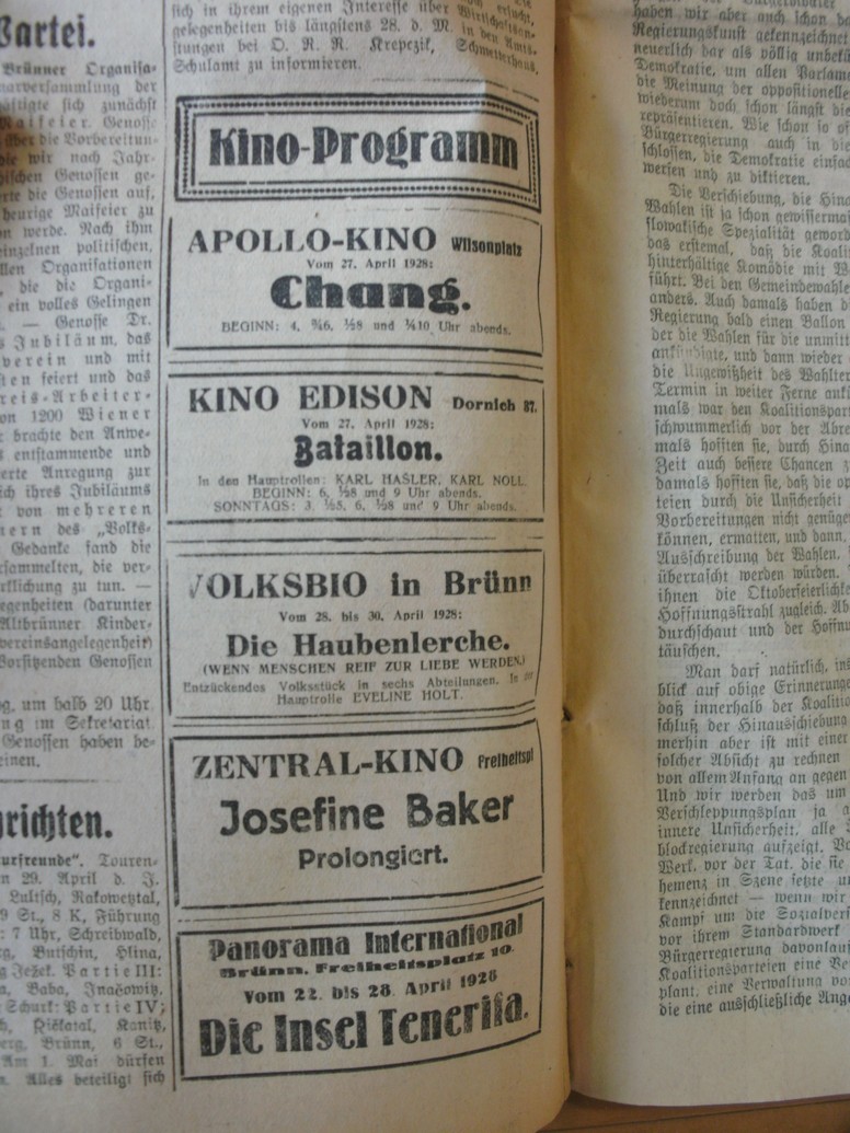 | Programme publishing date | 1928-04-27: Rovnost | 1928-04-27 | 117 | 100 |