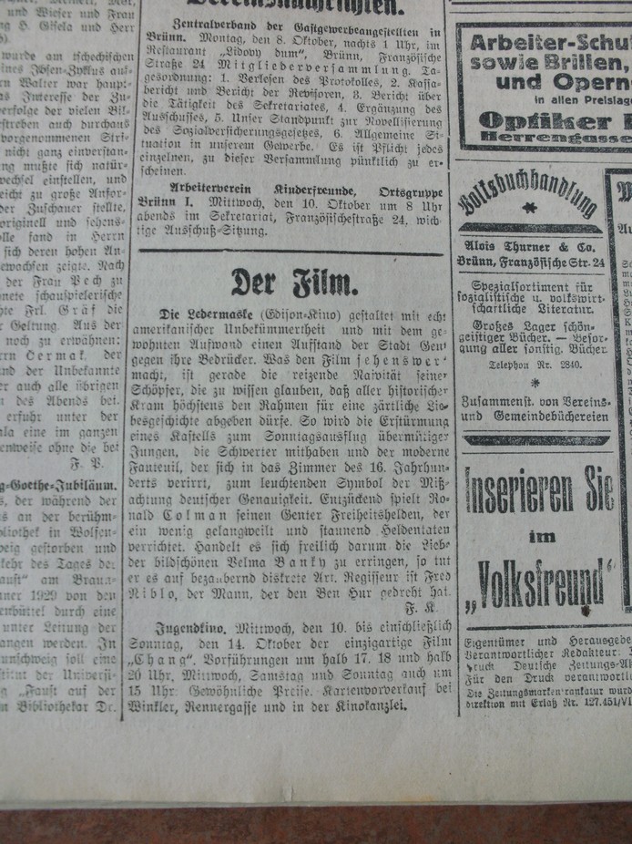 | Cinema | Volksfreund | 1928-10-07 | 239 | 100 |