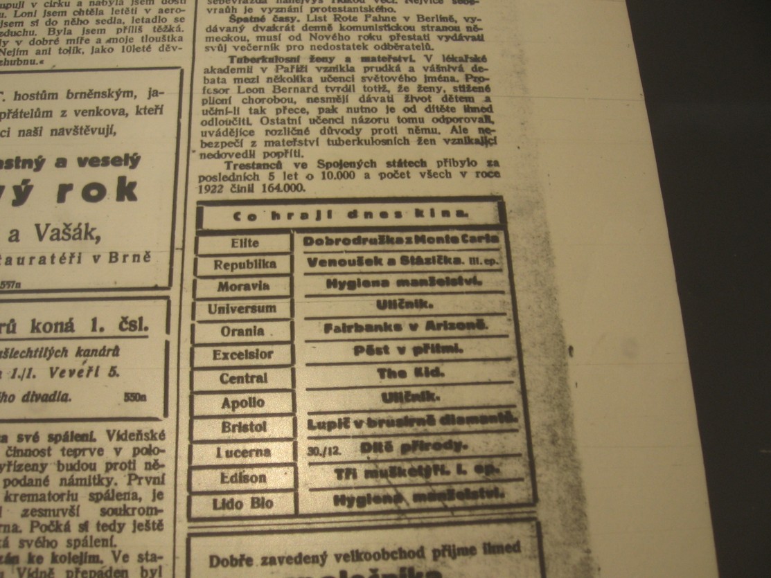 | Cinema | Moravské noviny | 1922-12-31 | 295 | 100 |