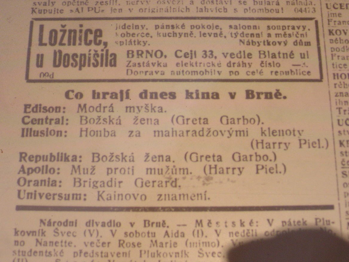 | Cinema | Moravské noviny | 1929-02-09 | 33 | 100 |