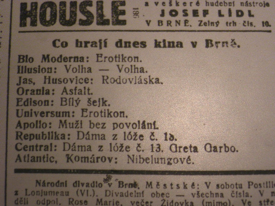 | Cinema | Moravské noviny | 1929-04-10 | 83 | 100 |