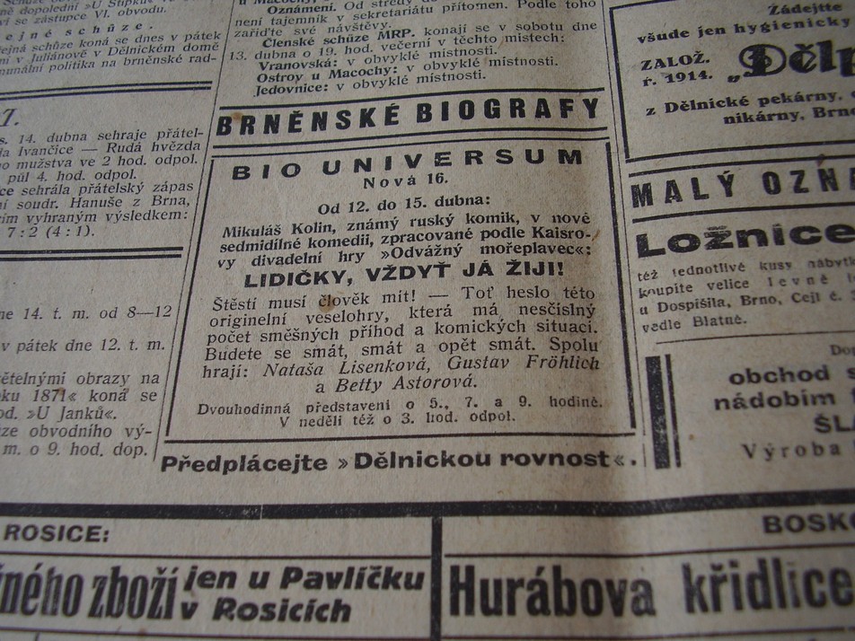 | Cinema | Moravské noviny | 1929-04-13 | 86 | 100 |