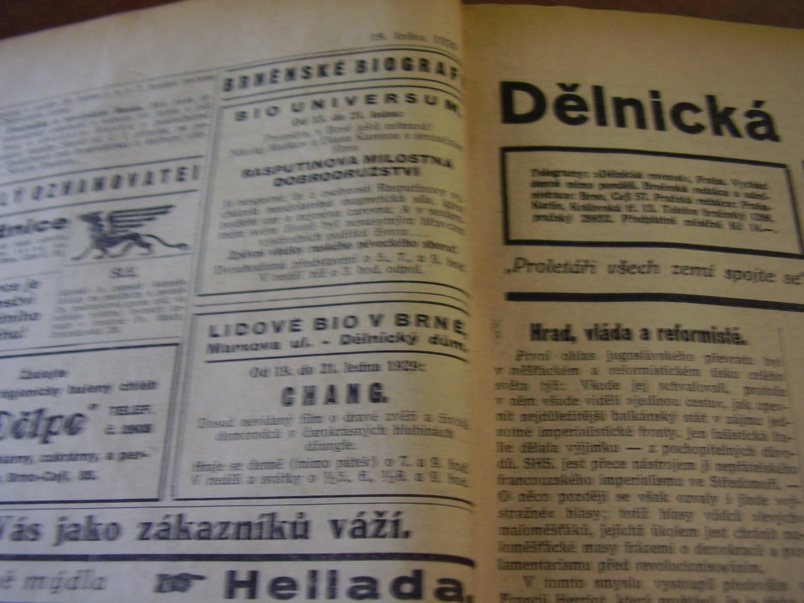 | Programme publishing date | 1929-01-18: Rovnost | 1929-01-18 | 11 | 100 |
