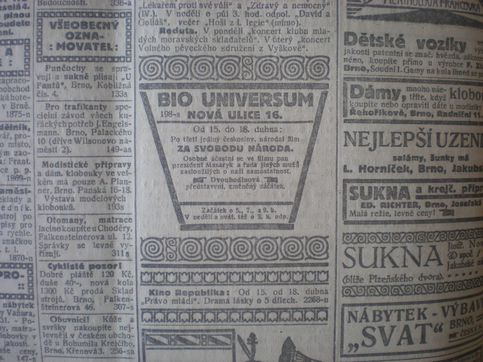 | Number of screenings | Lidové noviny | 1921-04-15 | 186 | 100 |