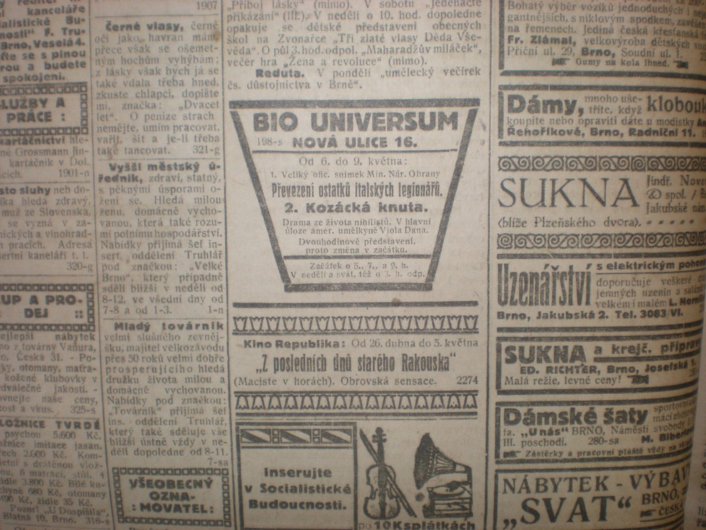 | Programme publishing date | 1921-04-29: Rovnost | 1921-04-29 | 117 | 100 |