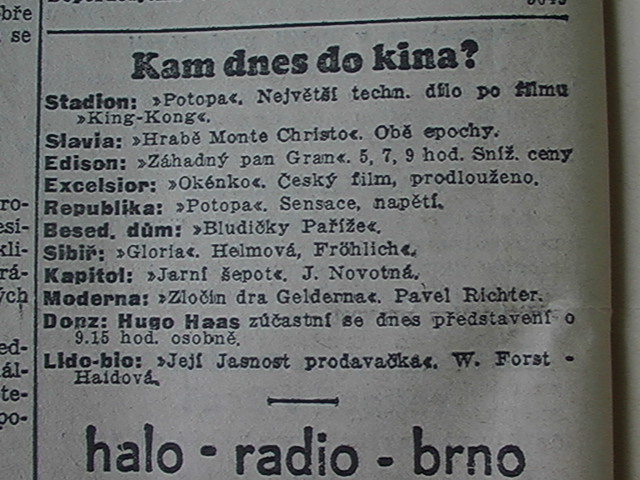| Cinema | Moravské slovo | 1934-01-23 | 15 | 100 |