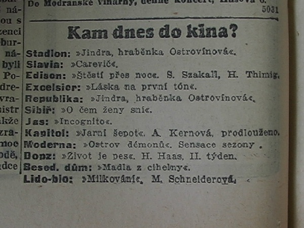 | Cinema | Moravské slovo | 1934-01-27 | 19 | 100 |