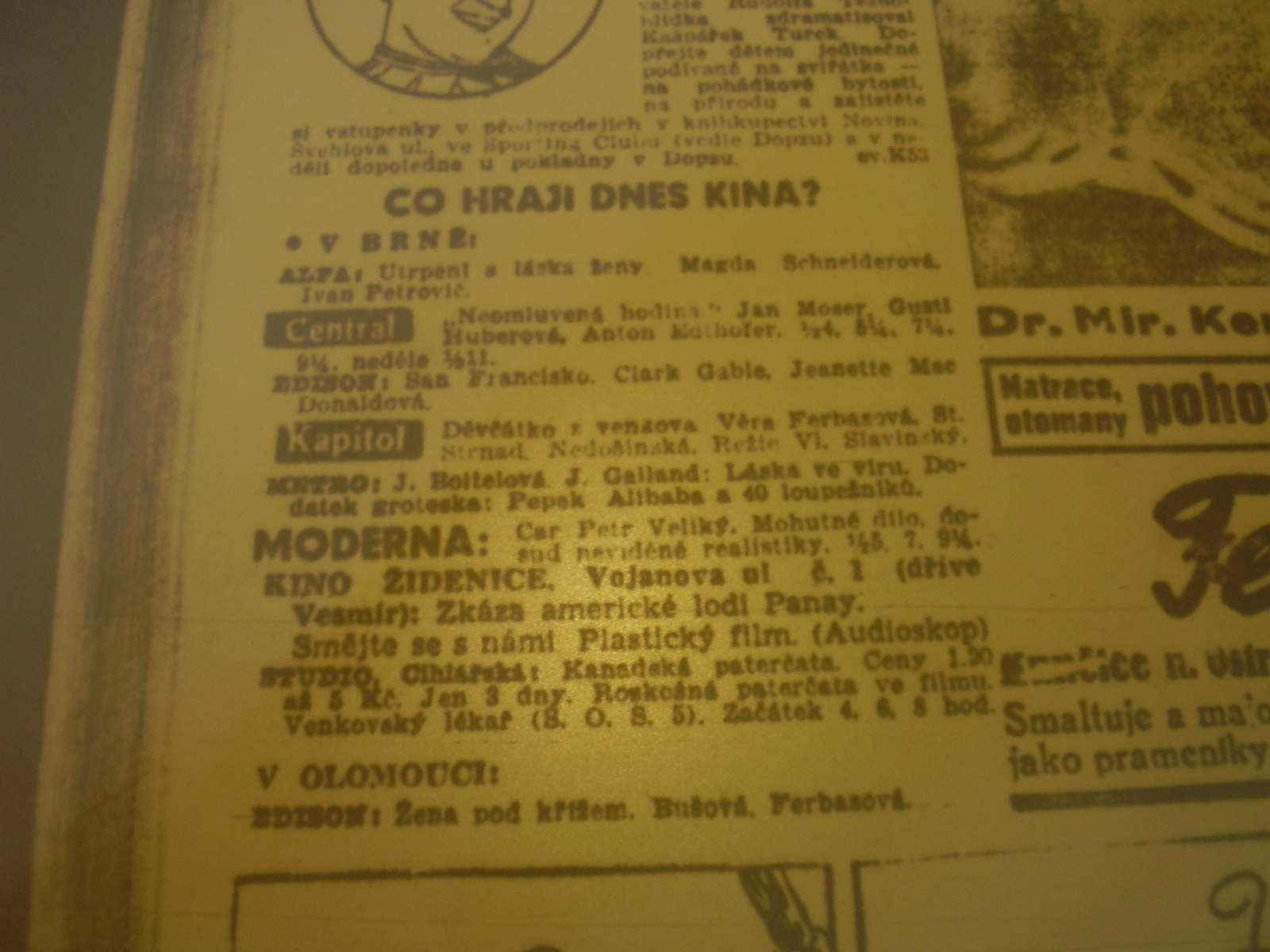 | Cinema | Moravské slovo | 1938-01-29 | 24 | 100 |