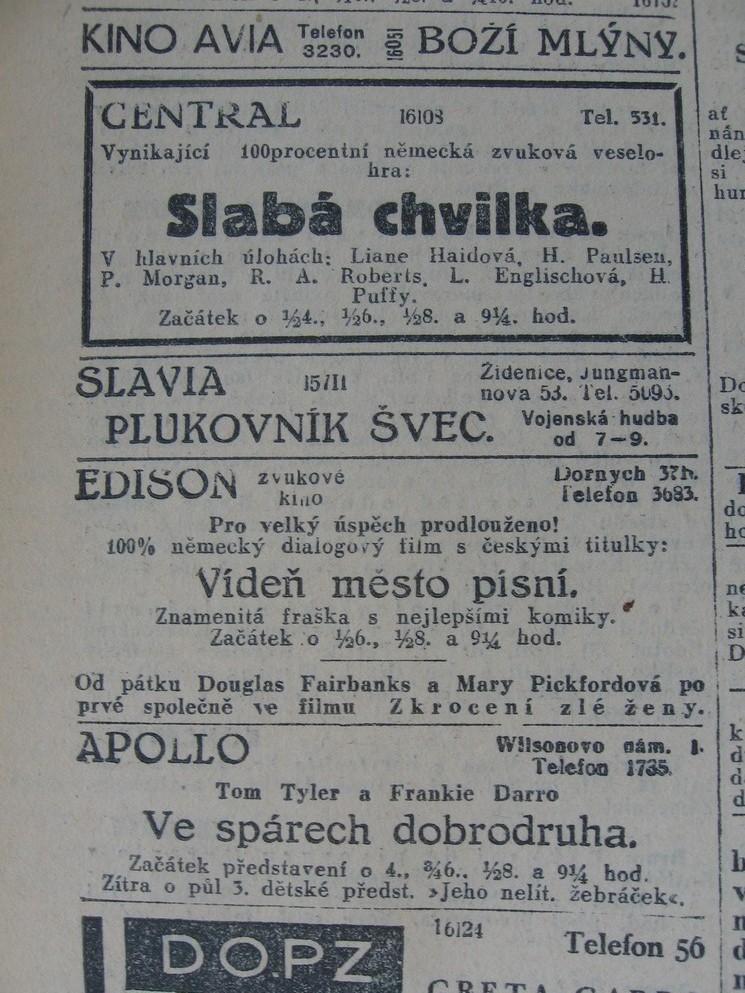 | Programme publishing date | 1930-09-01: Lidové noviny | 1930-09-01 | 440 | 100 |