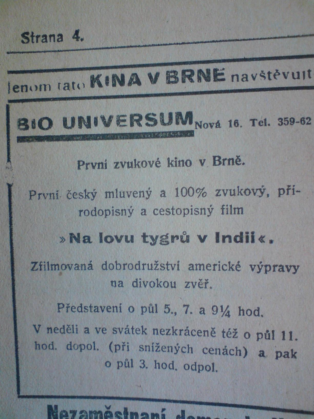 | Programme Description (CZ) | V neděli a ve svátek nezkráceně též o půl 11. hod. dopol. (při snížených cenách) a pak o půl 3. hod. odpol.: Rovnost | 1931-01-20 | 16 | 100 |
