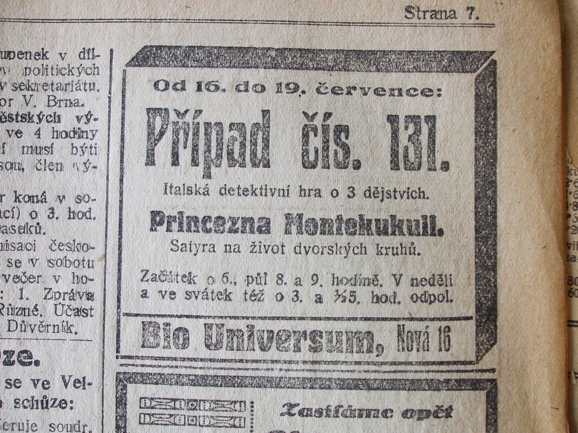 | Numbers | Princezna Montekukuli: Lidové noviny | 1920-07-16 | 347 | 100 |
