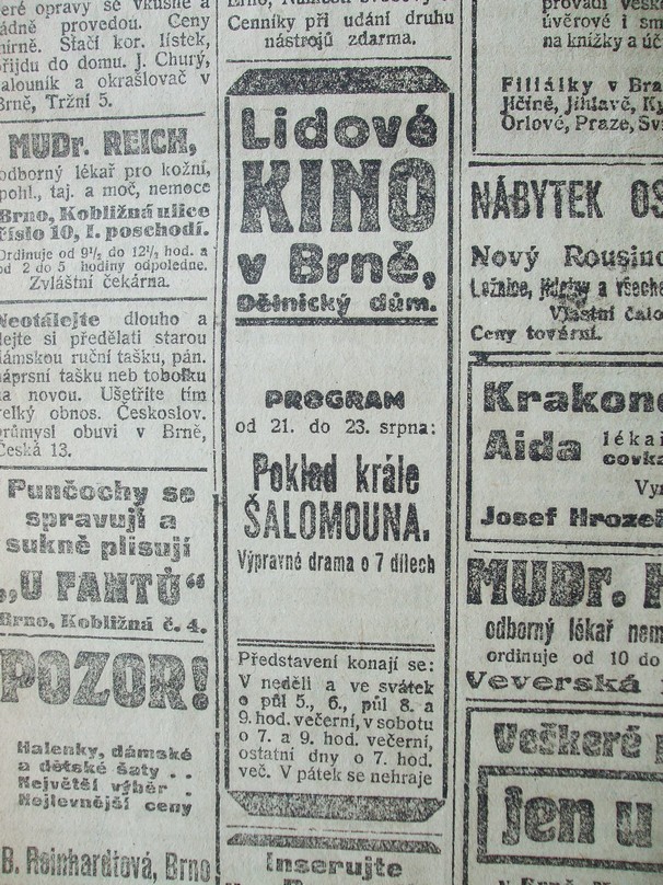 | Cinema | Rovnost | 1920-08-21 | 230 | 100 |