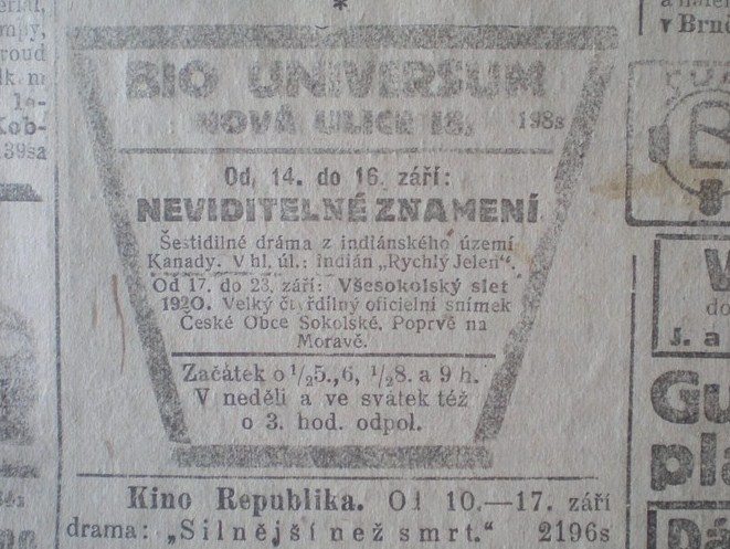 | Cinema | Lidové noviny | 1920-09-15 | 459 | 100 |