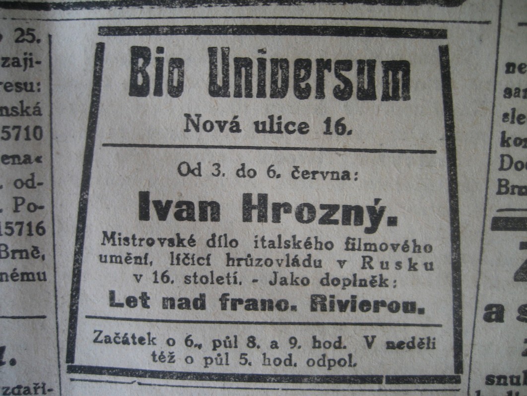 Začátek o 6., půl 8. a 9. h. V neděli též o 3. a půl 5. h. odp.