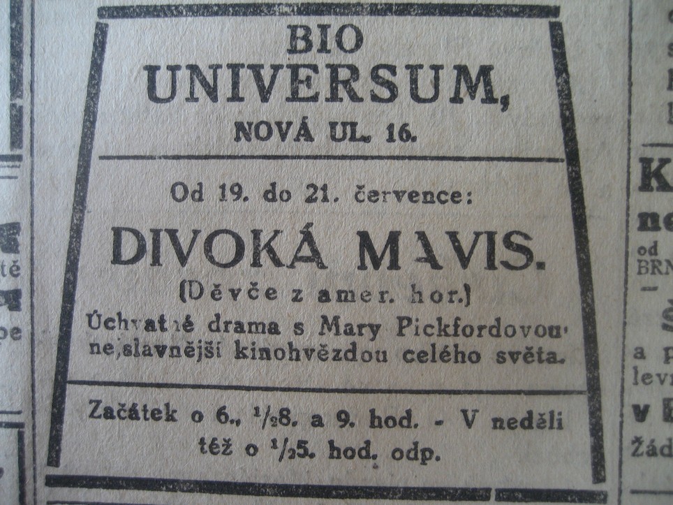 Začátek o 6., půl 8. a 9. h. V neděli též o 3. a půl 5. h. odp.