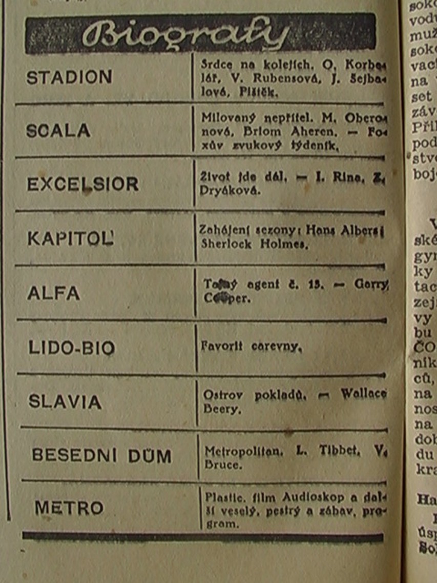 | Cinema | Moravské slovo | 1937-08-17 | 192 | 100 |