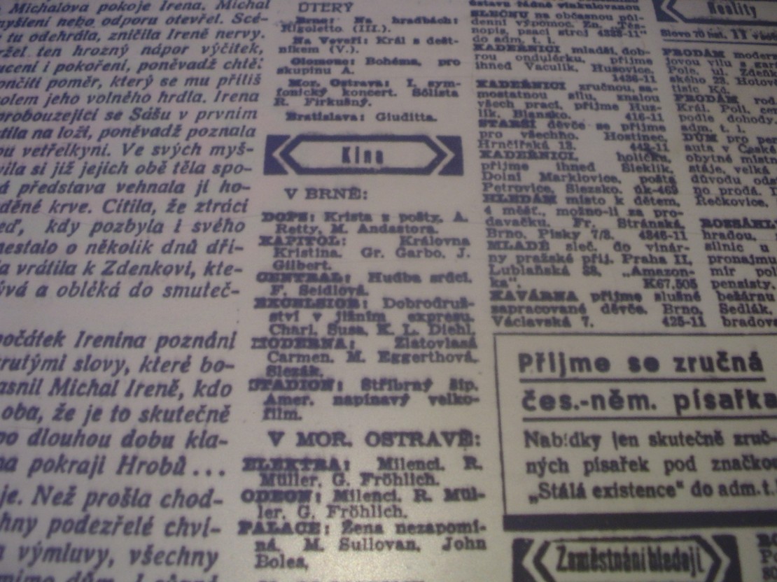 | Cinema | Moravské noviny | 1935-11-19 | 267 | 100 |