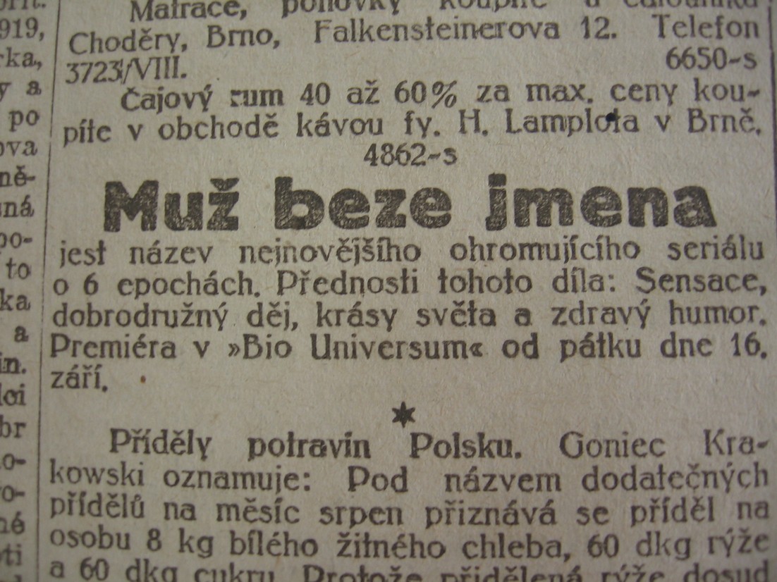 | Programme publishing date | 1921-09-23: Moravské noviny | 1921-09-23 | 217 | 100 |