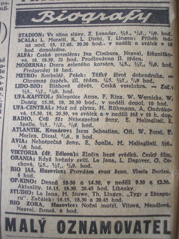 | Cinema | Moravské slovo | 1942-01-07 | 5 | 100 |