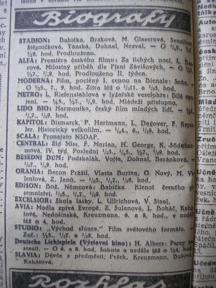 | Cinema | Moravské slovo | 1941-01-25 | 21 | 100 |