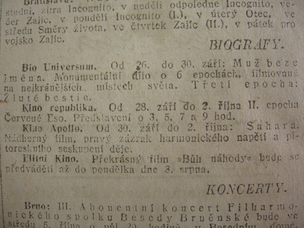 | Programme publishing date | 1921-09-30: Moravské noviny | 1921-09-30 | 223 | 100 |