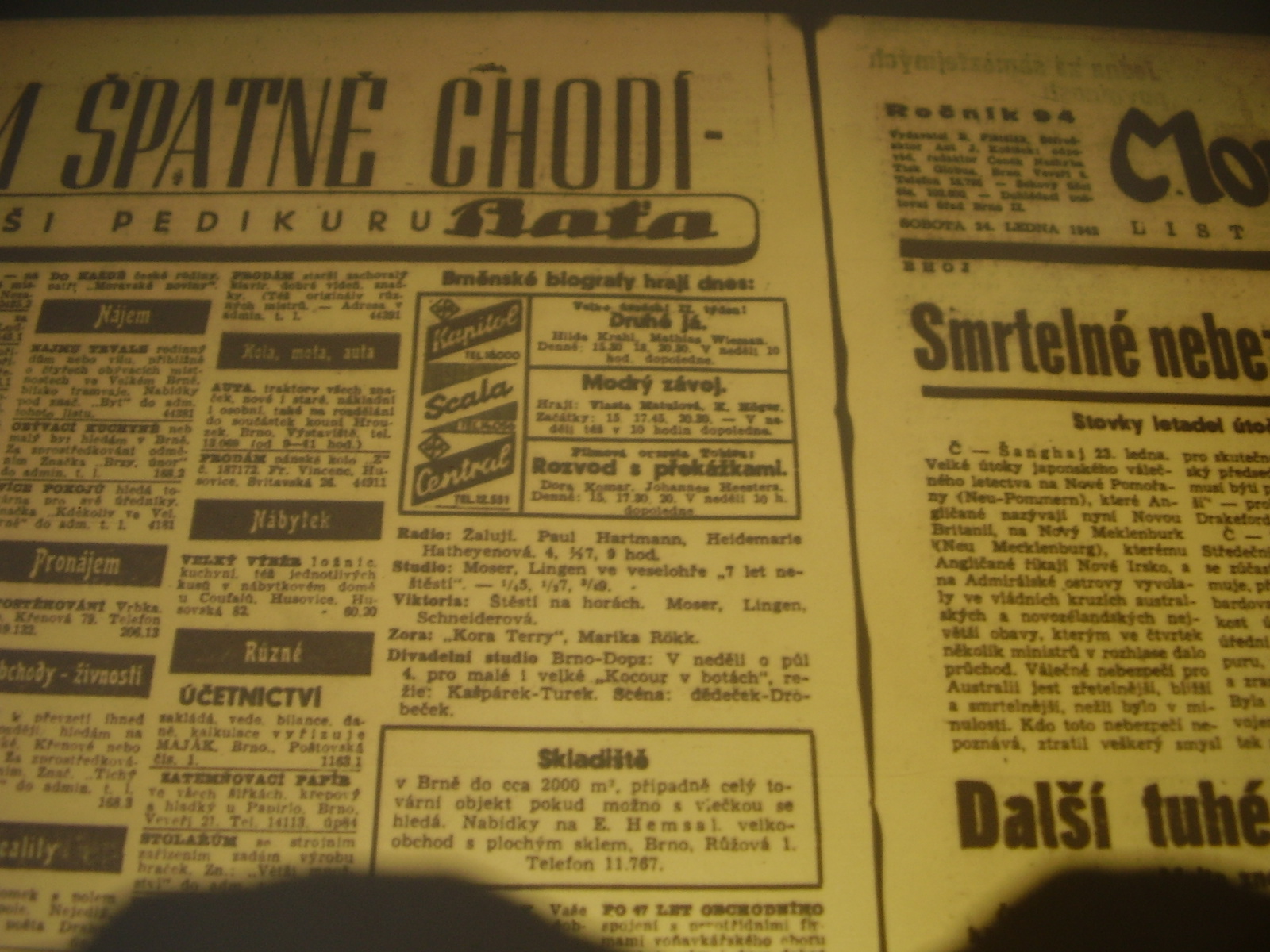 | Cinema | Moravské slovo | 1942-01-23 | 19 | 100 |