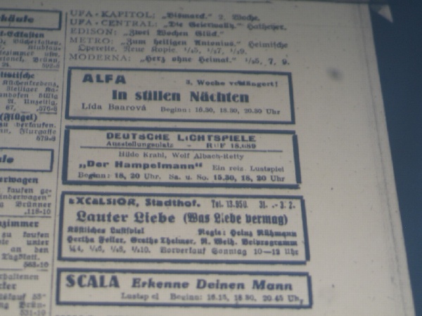 | Number of screenings | Tagesbote aus Mähren und Schlesien | 1941-01-31 | 31 | 100 |