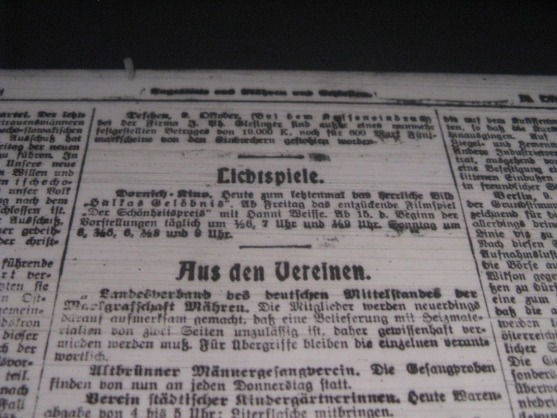 | Cinema | Tagesbote aus Mähren und Schlesien | 1918-10-10 | 473 | 100 |