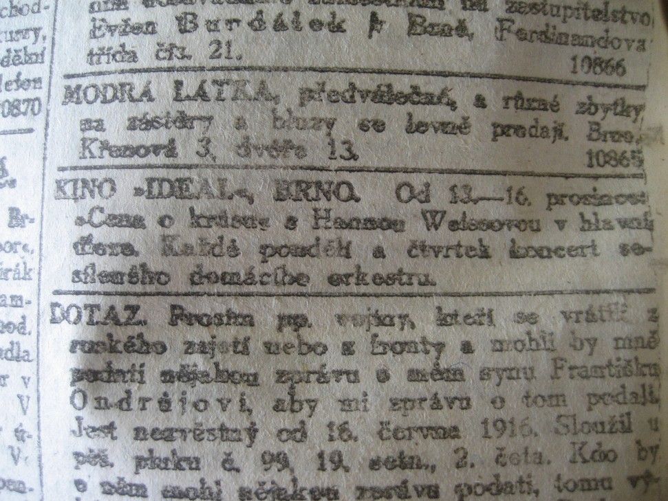 | Programme publishing date | 1918-12-15: Tagesbote aus Mähren und Schlesien | 1918-12-15 | 586 | 100 |