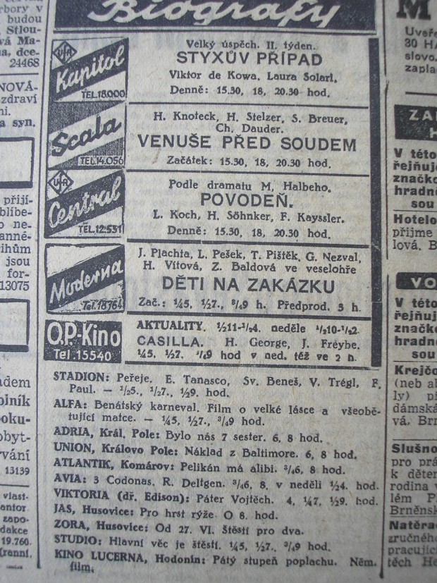 | Cinema | Moravské slovo | 1942-06-26 | 150 | 100 |