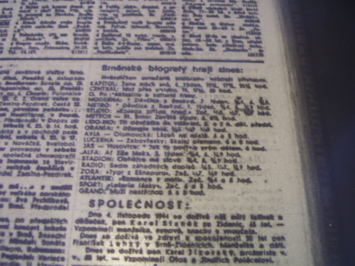 | Cinema | Moravské slovo | 1944-01-18 | 14 | 100 |