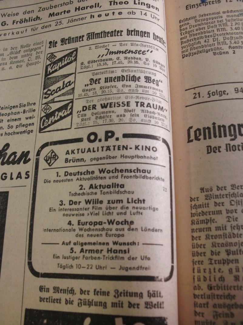 | Cinema | Moravské slovo | 1944-01-21 | 17 | 100 |