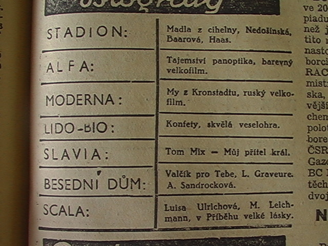 | Cinema | Moravské slovo | 1936-06-13 | 138 | 100 |
