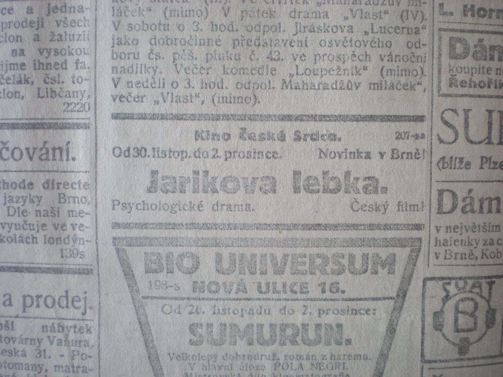 | Cinema | Lidové noviny | 1920-11-30 | 596 | 100 |