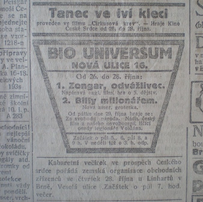 | Cinema | Rovnost | 1920-10-26 | 296 | 100 |