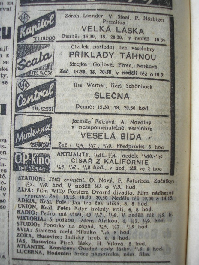 | Cinema | Moravské slovo | 1942-08-18 | 195 | 100 |
