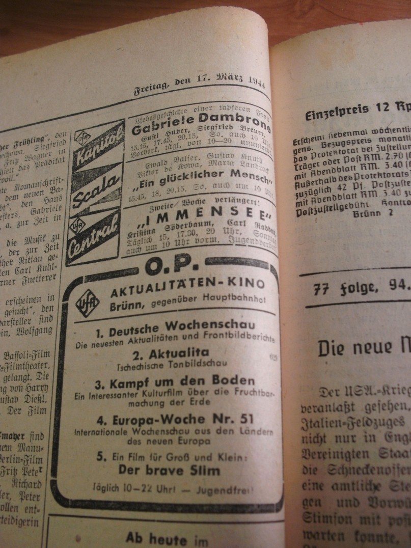 | Programme Description (DE) | Brünner Abendblatt | 1944-03-17 | 100 |