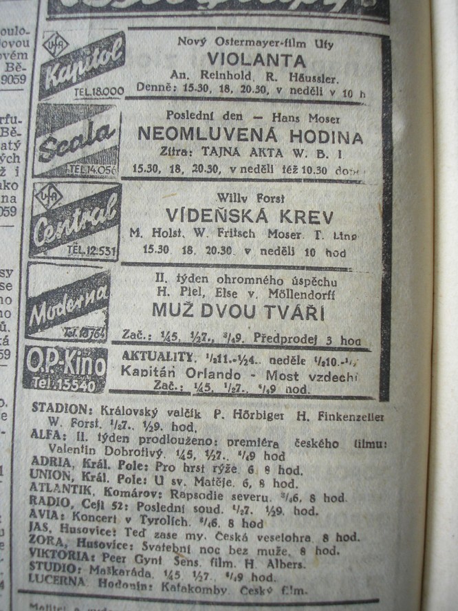 | Cinema | Moravské slovo | 1942-08-28 | 204 | 100 |