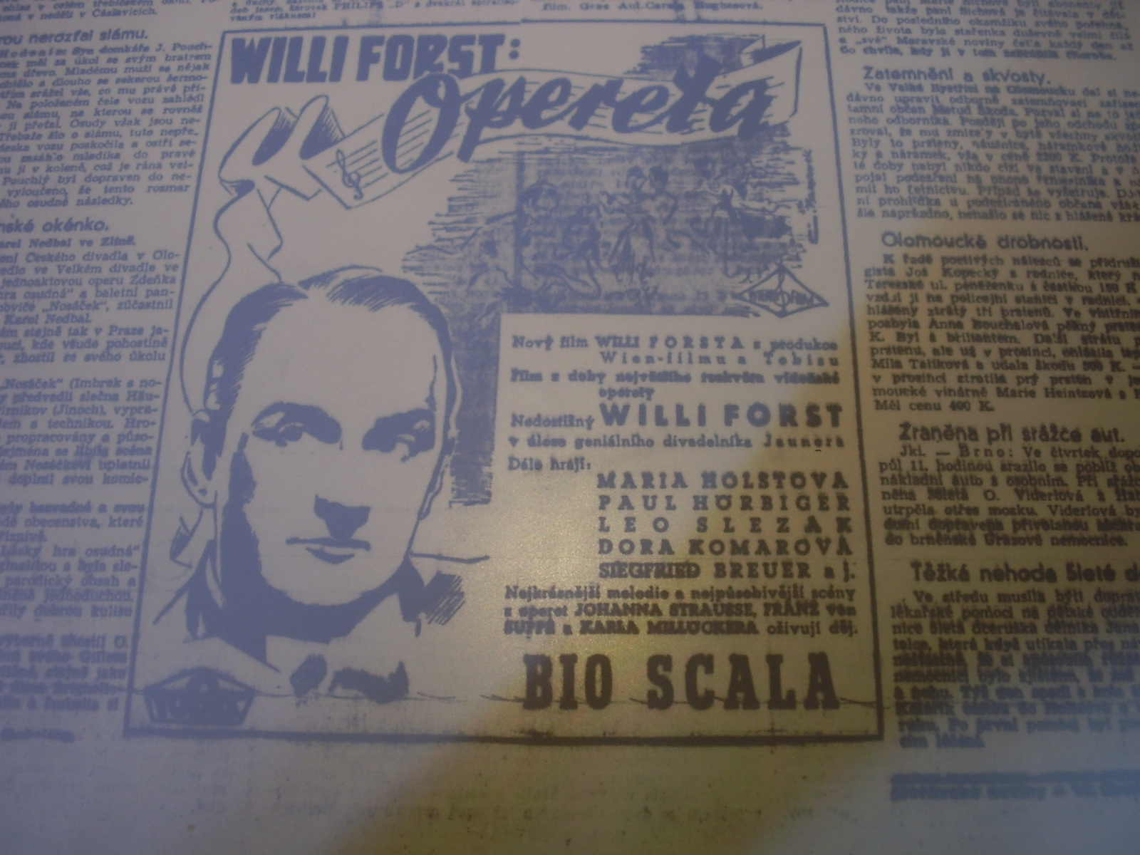 Pozor změna začátku představení: 14 h., 18:30 a 21 h. (Moravské noviny 15. 2. 1941)