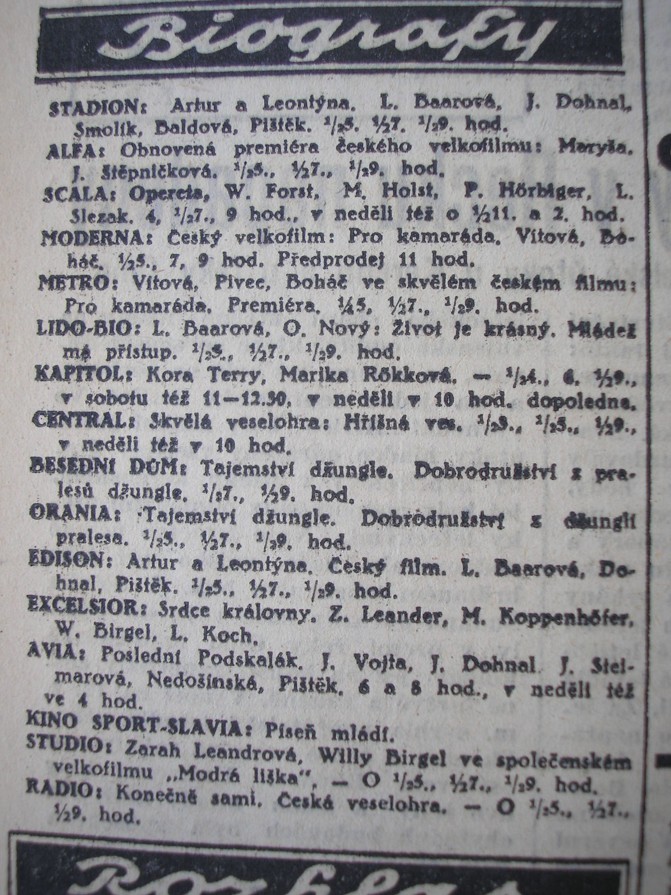 | Cinema | Moravské slovo | 1941-02-14 | 38 | 100 |