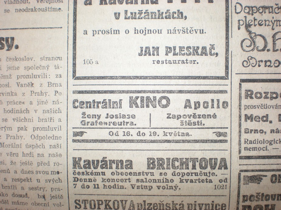 | Programme publishing date | 1919-05-16: Tagesbote aus Mähren und Schlesien | 1919-05-16 | 228 | 100 |