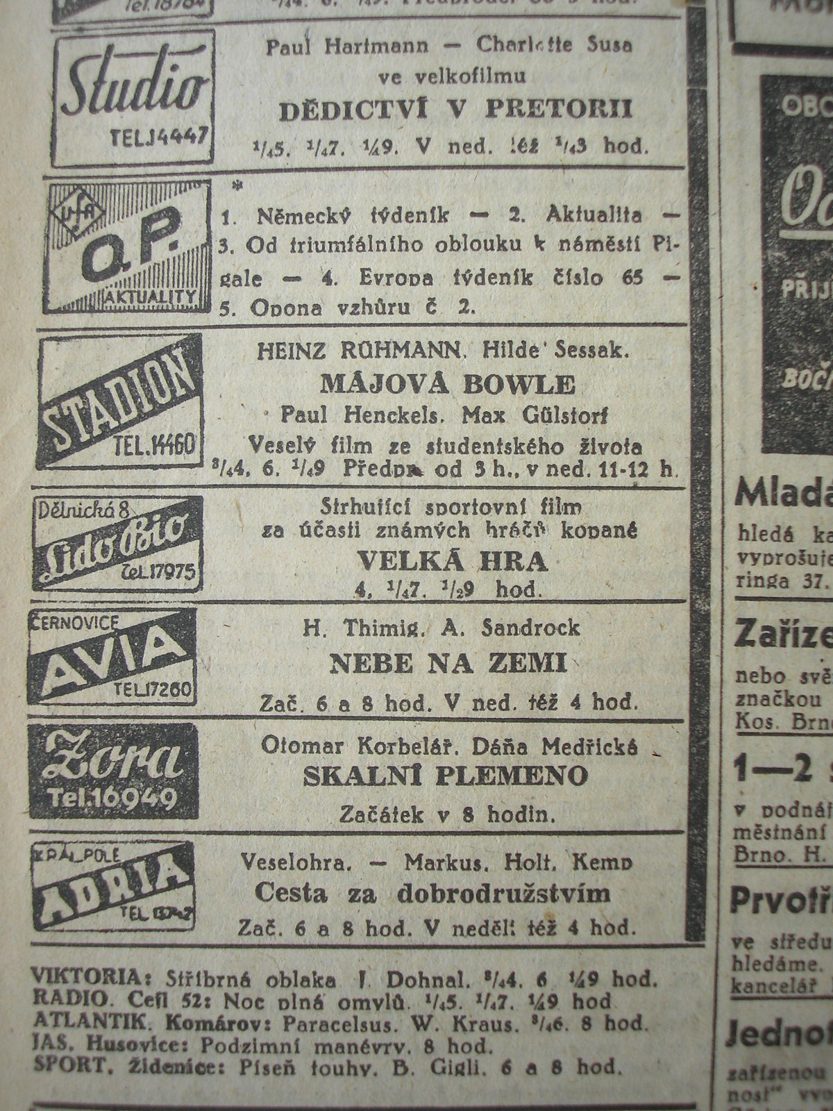 | Cinema | Moravské slovo | 1944-06-29 | 153 | 100 |