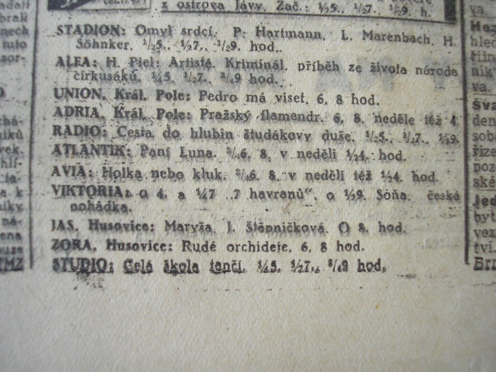 | Cinema | Moravské slovo | 1942-09-19 | 223 | 100 |
