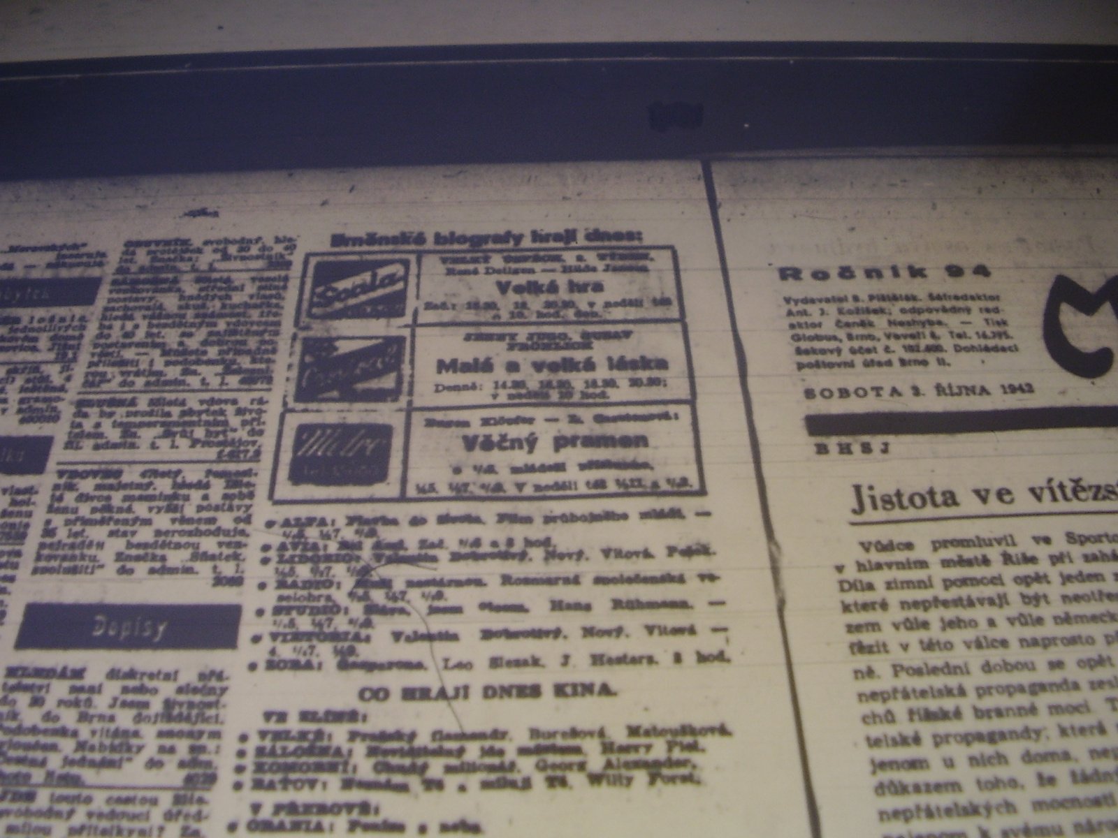 | Cinema | Moravské slovo | 1942-10-02 | 234 | 100 |