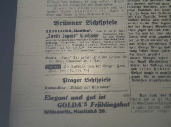| Cinema | Tagesbote aus Mähren und Schlesien | 1939-03-10 | Folge 17 | 100 |