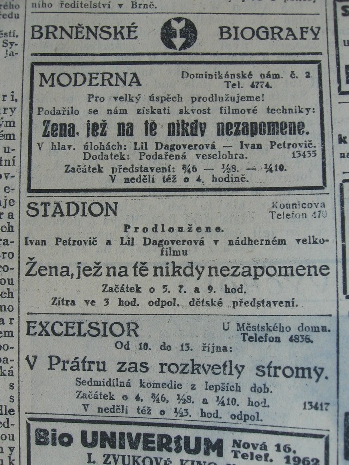 | Cinema | Moravské slovo | 1930-10-11 | 241 | 100 |